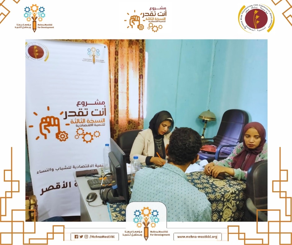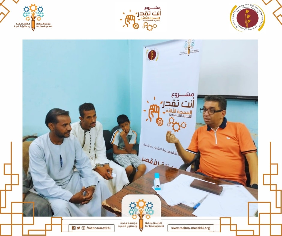 أجرى فريق عمل مؤسسة مهنة ومستقبل للتنمية اليوم رابع الزيارات الميدانية إلى قرية أرمنت الحيط بمركز أرمنت، وذلك لإجراء المقابلات الشخصية لاختيار المستفيدين من مكون دعم وتطوير المشروعات القائمة، ومشروعات الشباب والنساء، بالإضافة إلى مشروعات الميكب آرتيست للنساء من قرى مركز أرمنت. تأتي هذه الزيارة ضمن إطار تنفيذ النسخة الثالثة من مشروع “أنت تقدر” للتنمية الاقتصادية بمحافظة الأقصر، والممول من مؤسسة بنك مصر لتنمية المجتمع ومؤسسة مهنة ومستقبل للتنمية.